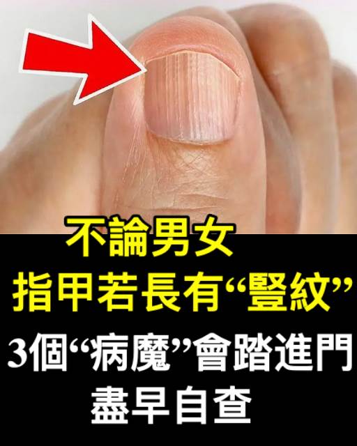 不論男女,指甲若長有「豎紋」,3個「病魔」會踏進門,盡早自查