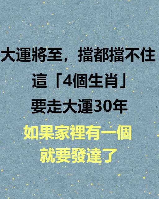 大運將至!這4個生肖要走大運30年,如果家裡有一個就要發達了!